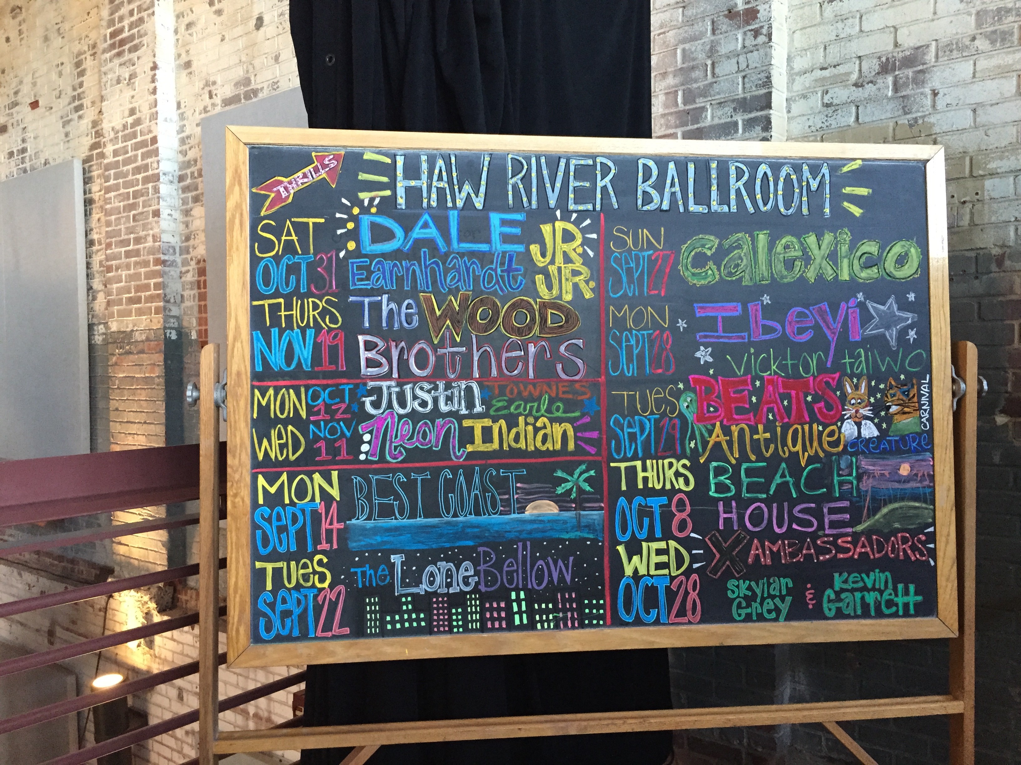 A colorful chalkboard with upcoming bands notably lists The Lone Bellow, whom we saw at Eaux Claires.